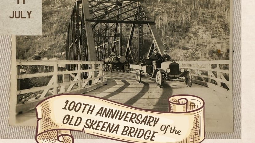 In a Facebook post by Heritage Park Museum in Terrace - asking the community to join in celebrating a century of history for a ribbon cutting ceremony and a beautiful parade of classic cars across the Old Skeena Bridge by 1:30pm on July 11 2025.